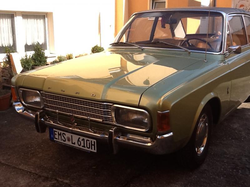 Hersteller FORD Typ Taunus 17M Baujahr 1970 Modellgeneration 31F Bauweise Limousine 2/3türig Hubraum 1.7 Liter Zylinder 4 Leistung in kW 48 Leistung in PS 65 Farbe Grün Farbe Herstellerbezeichnung/-code Grün