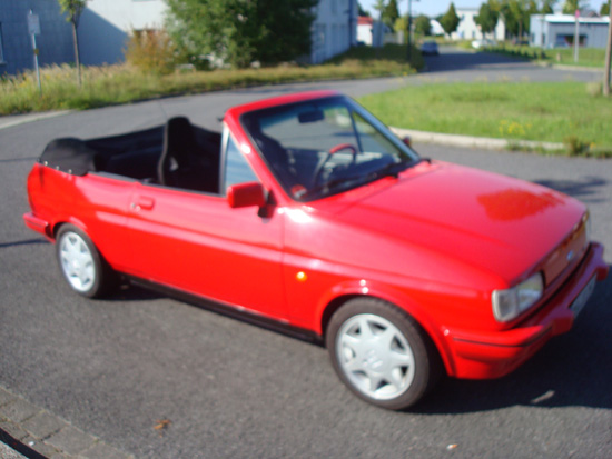 Hersteller FORD Typ FIESTA Baujahr 1988 Werkscode FBD Modellgeneration 2 Bauweise Cabrio/Roadster Hubraum 1.6 Liter Zylinder 4 Leistung in kW 74 Leistung in PS 96 Farbe Rot Über mein Auto - alles Wissenswerte zum Fahrzeug UMBAU ZUM CABRIO / EINZELANFERTIGUNG