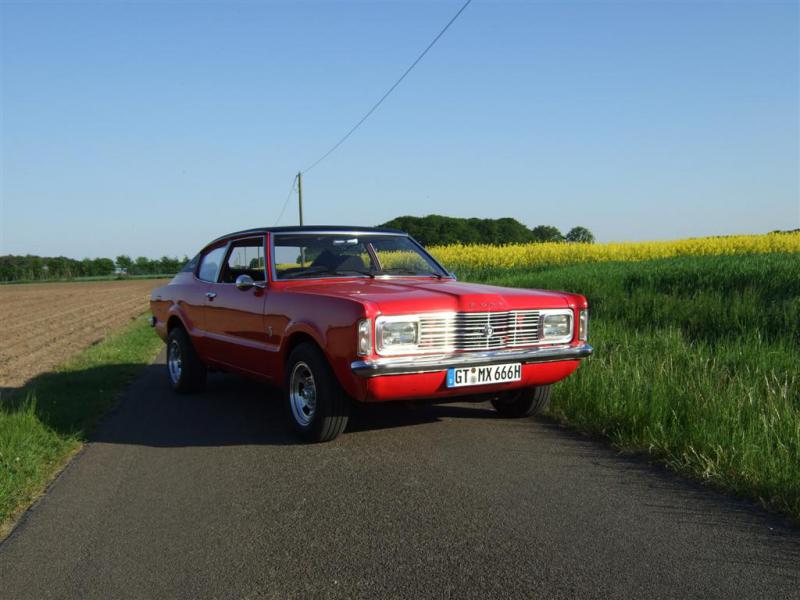 Hersteller Ford Typ Taunus Coupe GXL Baujahr 1971 Bauweise Coupe Hubraum 2.8 Liter Zylinder 6 Leistung in PS 135 Farbe Rot Farbe Herstellerbezeichnung/-code Rot