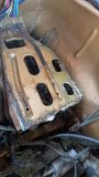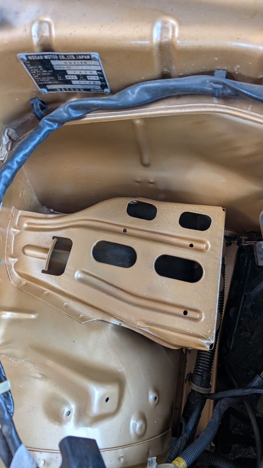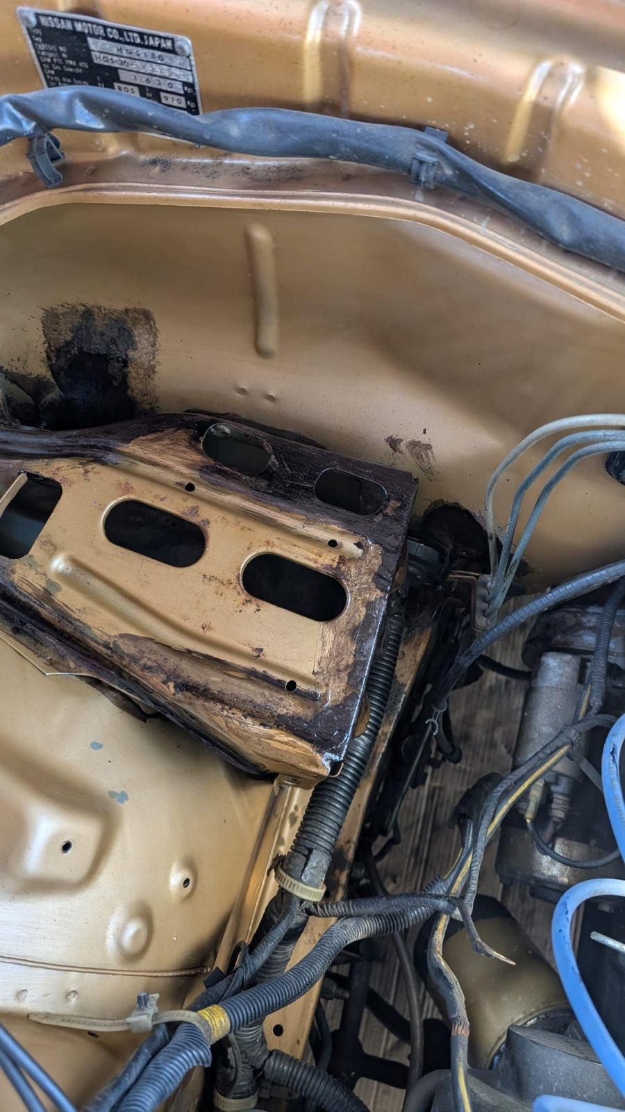Wie an den (unten) beigefügten Fotos zu sehen ist, wurde der Batteriehalter oberhalb/außen und auch unterhalb/innen entrostet, geschützt und mit einfacher Goldfarbe abgedeckt. Es ist hier nicht die originale angemischte Farbe verwendet worden.