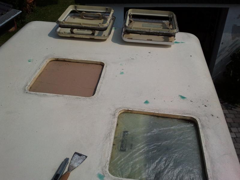 Glücklicherweise waren die alten Luken nicht so bombenfest, wie ich befürchtet hatte, sondern ließen sich mit einem Spachtel relativ leicht vom Dach lösen - natürlich nachdem ich zunächst innen den Rahmen entfernt habe.