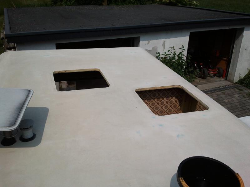 Also einfach 3 alte Luken raus und 3 neue rein. Lediglich die vordere Luke machte etwas mehr Mühe, da sie in einer leicht gewölbten Dachfläche sitzt und dementsprechend noch großzügiger abgedichtet werden wollte. (Ist die Luke da original?? Der Dachausschnitt war auch nicht so sauber, wie die anderen beiden...)