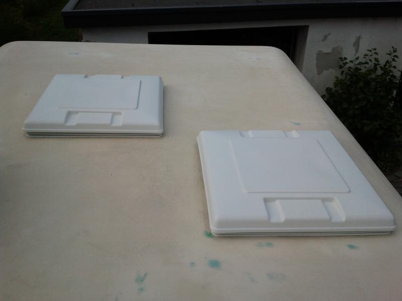 Um gleich Nägel mit Köpfen zu machen, sind die alten unansehnlichen und tlw. auch beschädigten Dachluken rausgeflogen und durch neue Fiamma Vent 50x50 ersetzt worden.