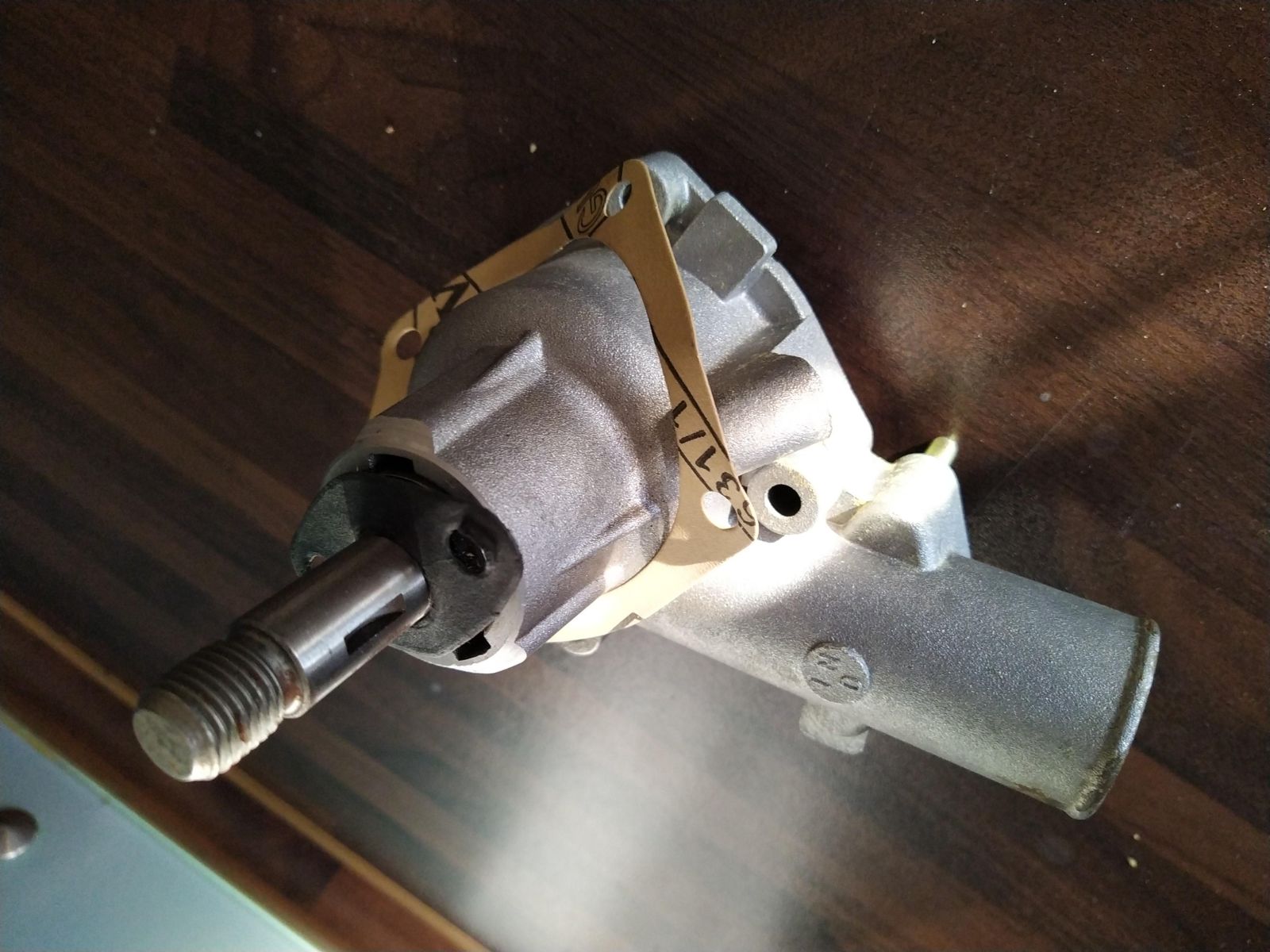 Bei der Gelegenheit wurde das mittlerweile rappelig-schnarrend wahrnehmbare Geräusch der alten Wasserpumpe zugeordnet.